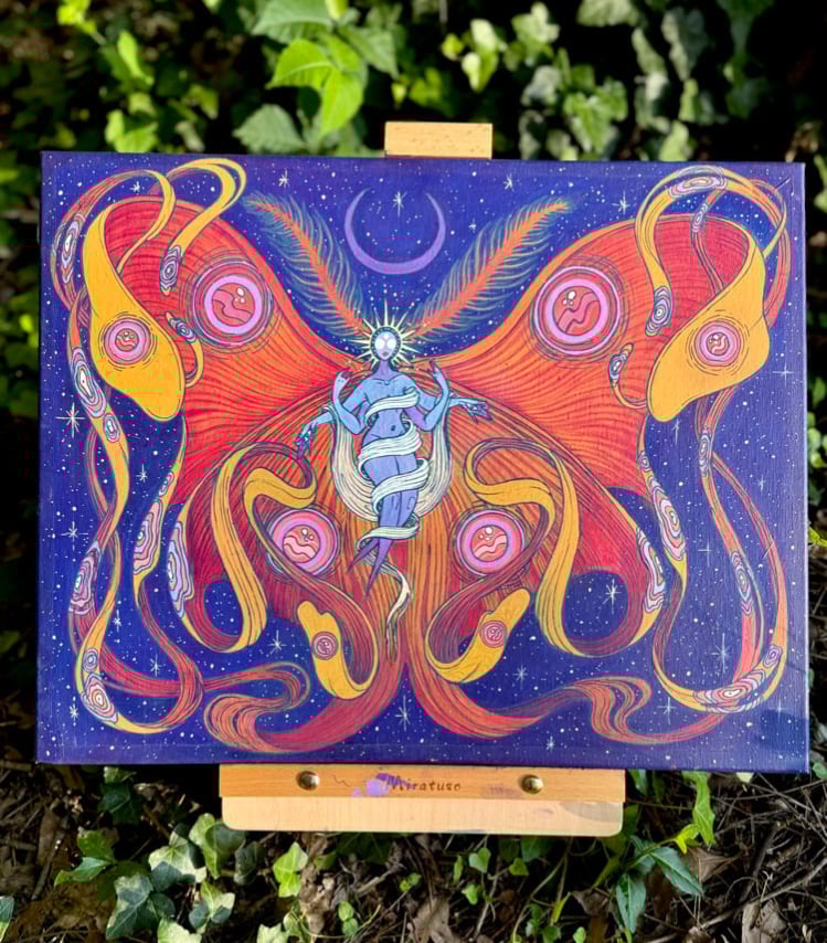 16x20” acrylic gouache on canvas. Inspired by the faeries of Celtic folklore and the music of Papadosio, this piece holds the essence of music, community and magic.